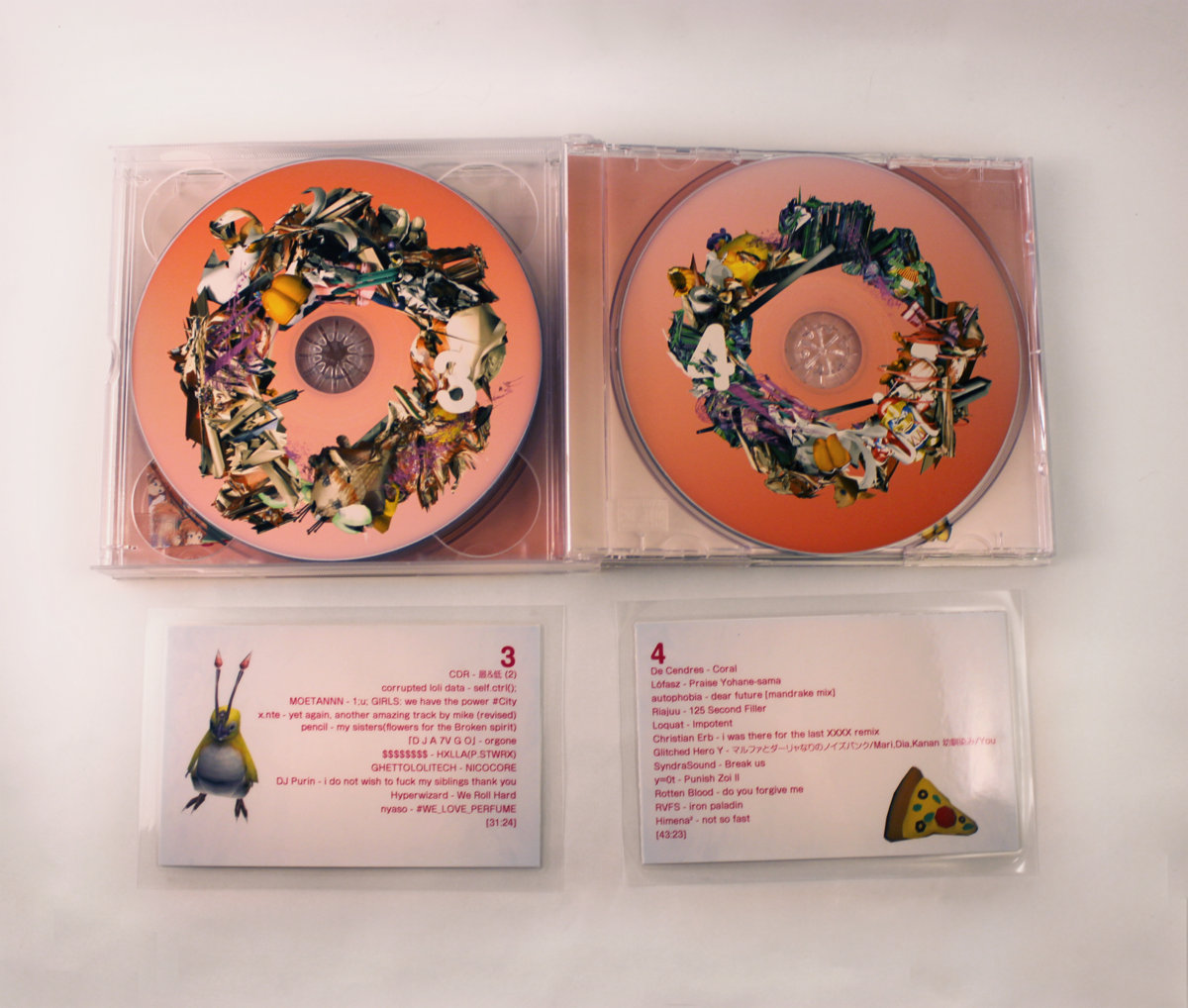 The album includes two laminated double-sided track list inserts and stickers.